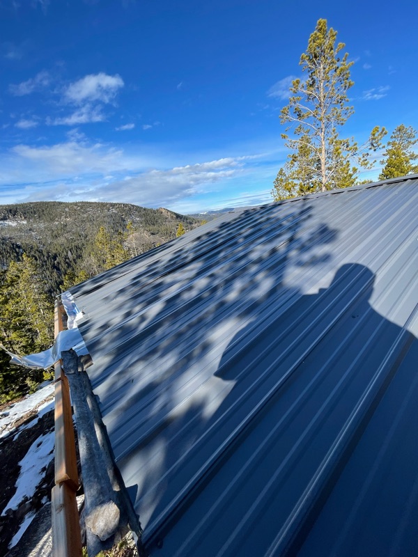 But I had to get up there in 25mph or so winds and put the roofing panels back on. There is still some touch up to do, but it’ll handle what’s next. Still a gorgeous day up on Top Knot.