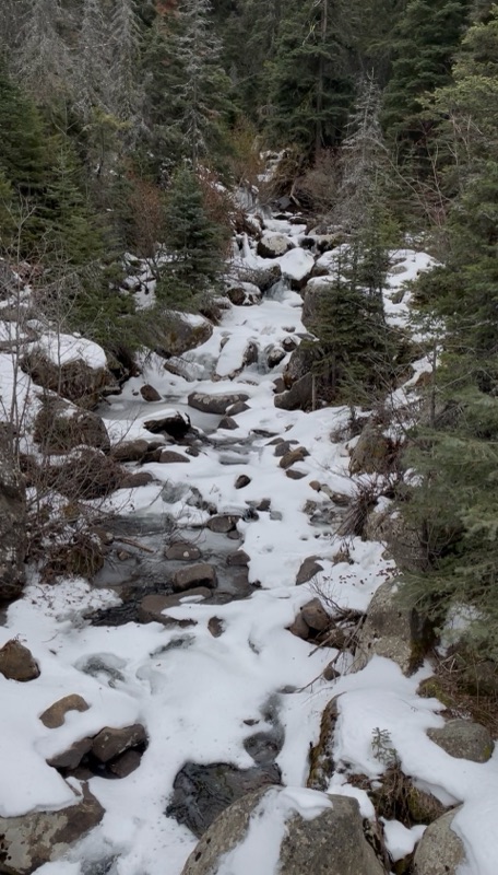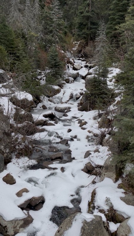 While I love hearing the water flowing over the rocks and down the mountain, I’m incredibly thankful for the frozen precipitation and the protection it will help bring from fires this summer. Less flow is more protection.