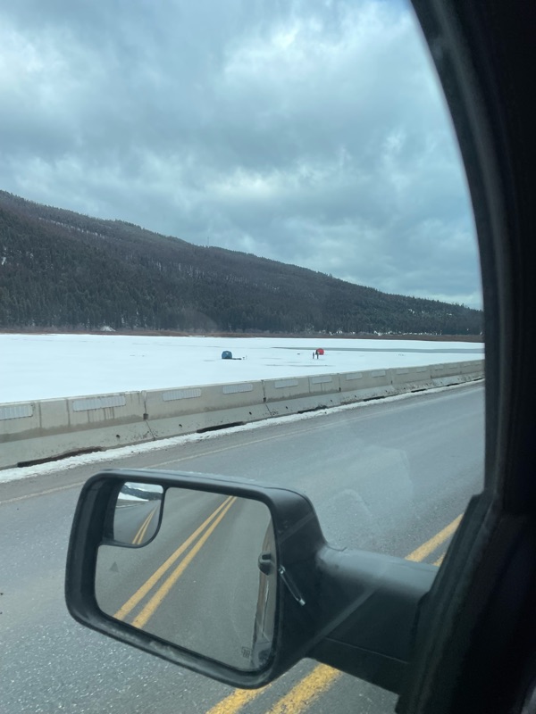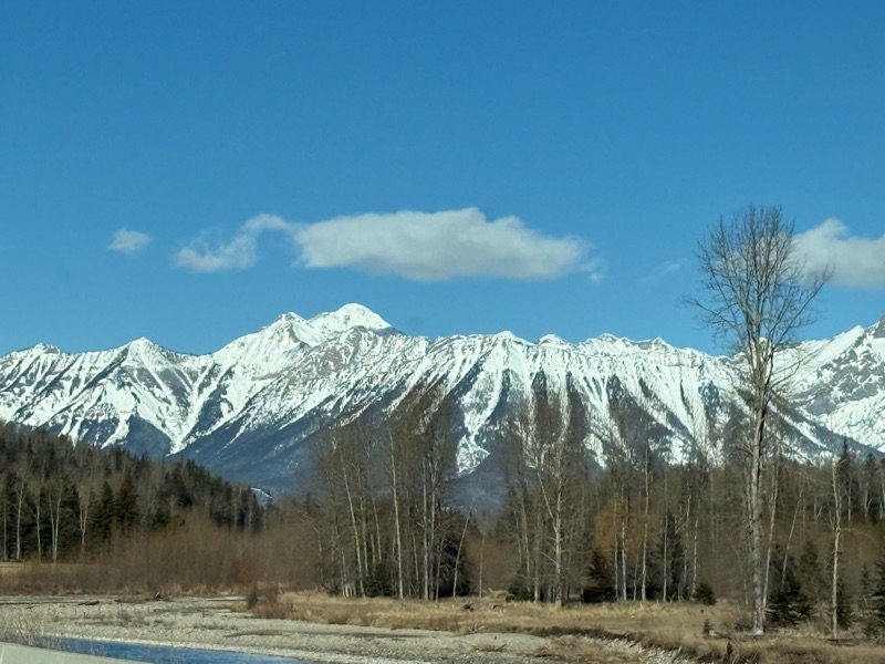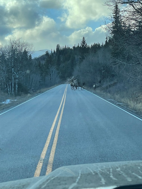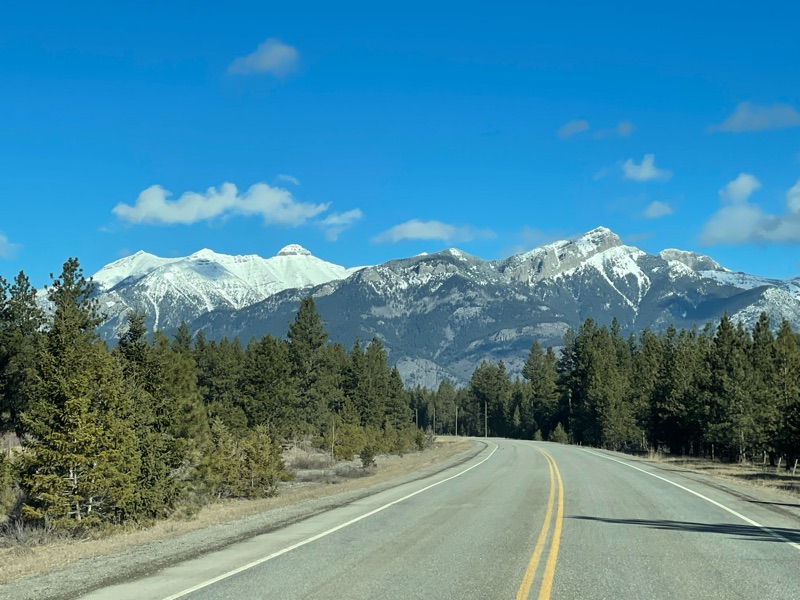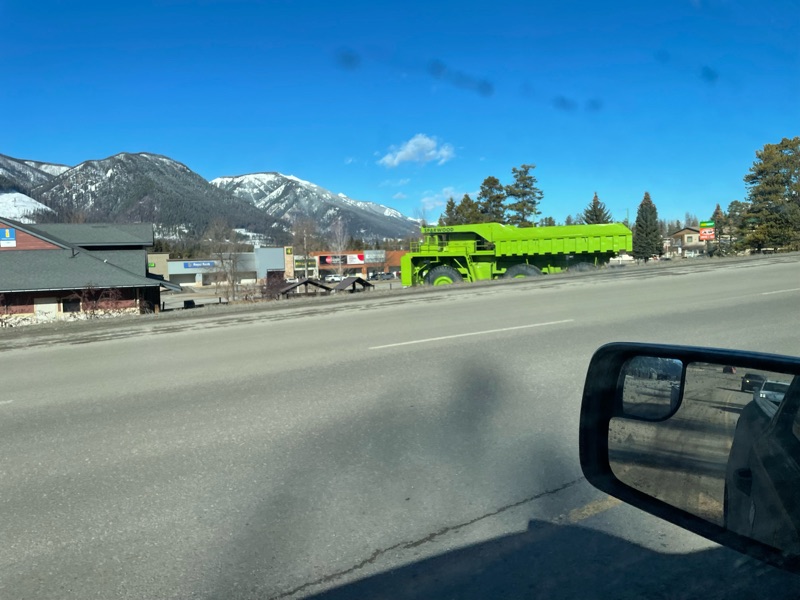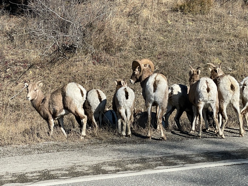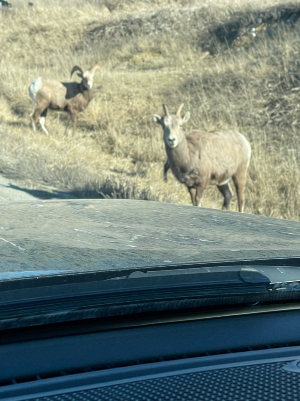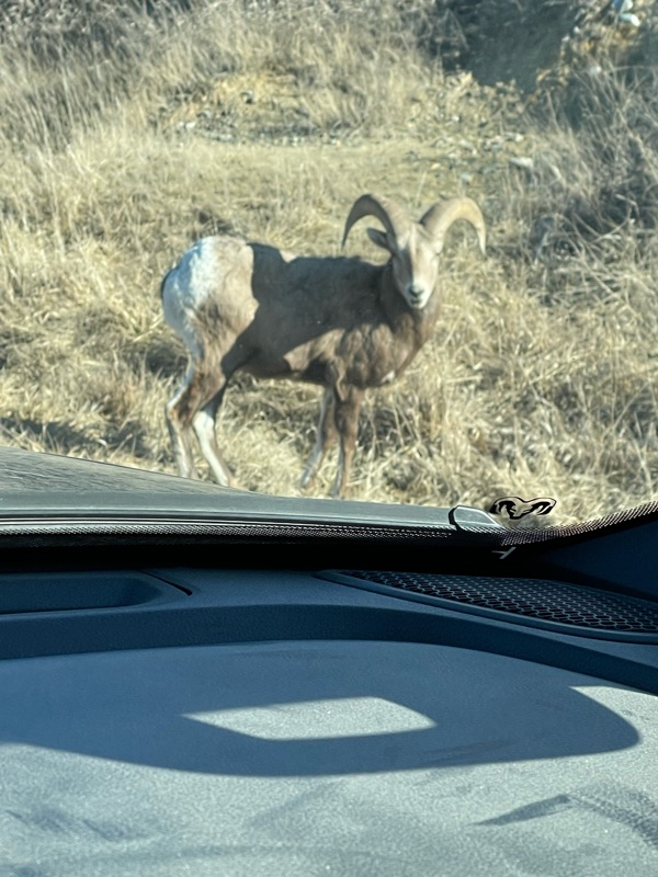 But then, smack in the middle of February, traveling into Canada on roads that should be covered in ice and snow, Mother Nature said, “Hey! Thanks for coming out! Look at all I can do!” Lemme tell ya…she can do SO much! Bighorns…(note the Ram logo on my currently being repaired windshield matching up!) mountain goats, elk, bald and golden eagles that were quicker than the camera, “The World’s Largest Truck”, and incredible scenery in all directions. Rivers and creeks that should be frozen were flowing. Yummy nummins were had. 80’s tunes cranked.